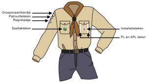Bij het bestellen van een blouse heb je ook een speltakteken en een installatieteken nodig. Deze worden bij het installeren uitgereikt. Hier zijn geen kosten aan verbonden.